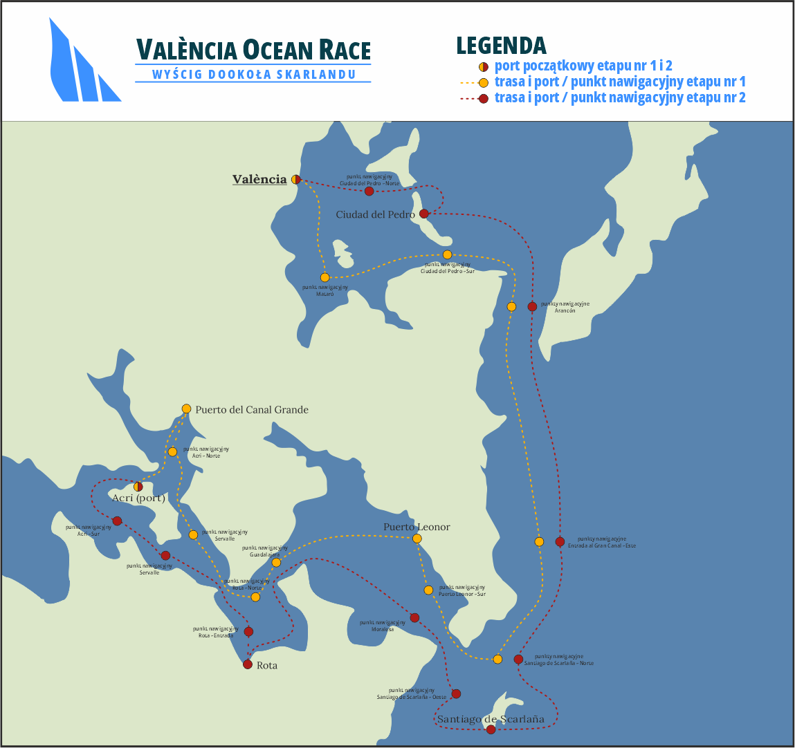 Oficjalna mapa etapu nr 1 i 2 przedstawia wszystkie punkty kontrolne i porty na trasie. Początek 1 etapu jutro godzina 10:00